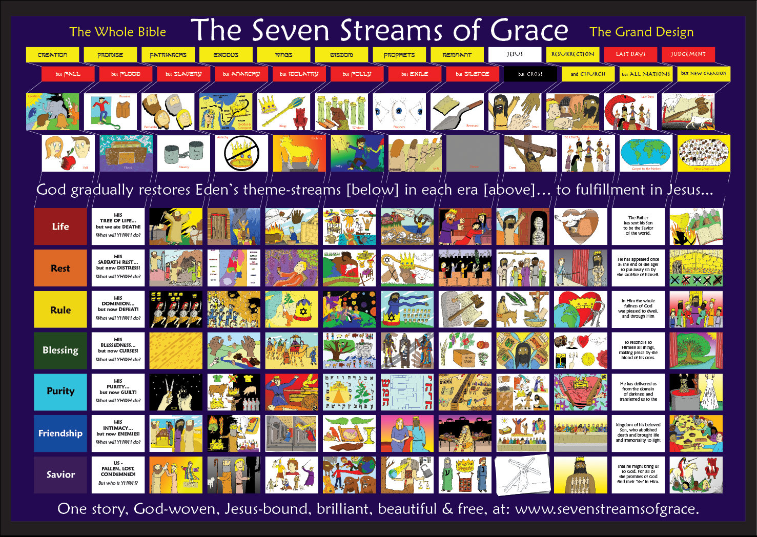 It shows how hundreds of Bible stories are actually scenes within great theme-stories that flow through the whole Bible.